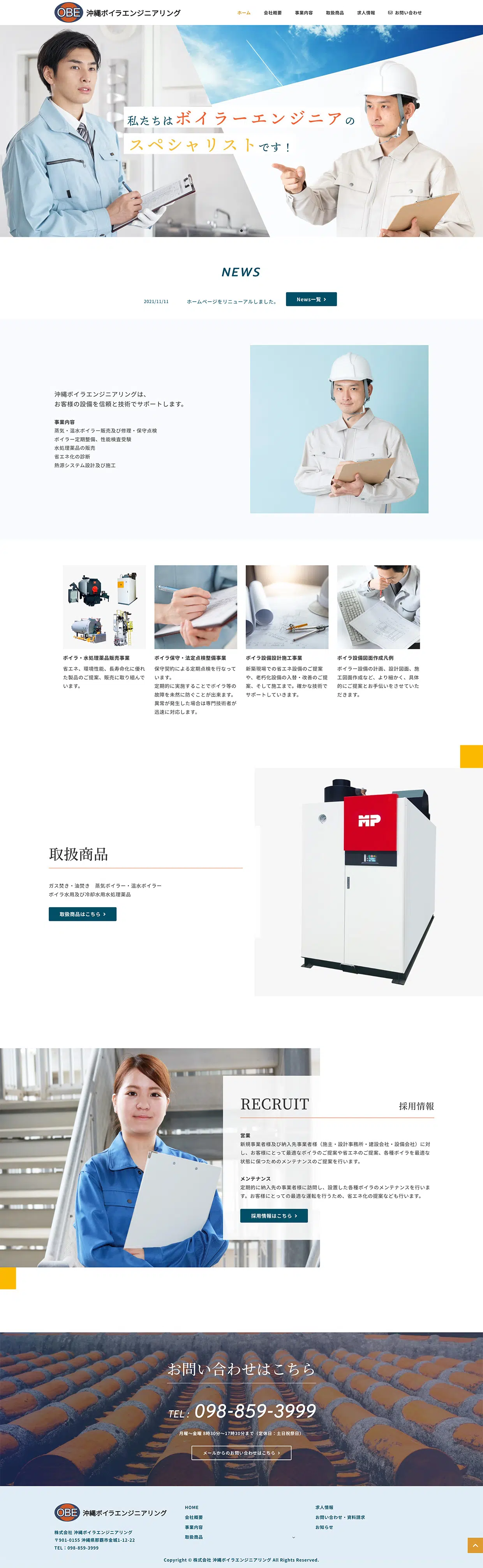 株式会社沖縄ボイラエンジニアリング様 WEBサイトを制作しました。